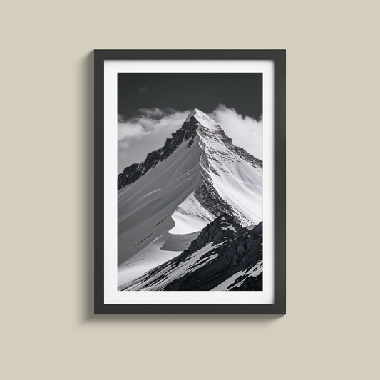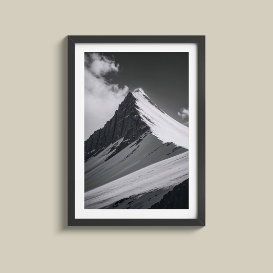 Gorgeous black and white snow capped mountain print