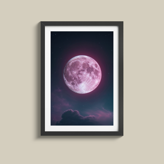 Beautiful pink moon and stary night sky print