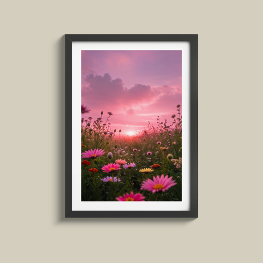 Beautiful wild flowers sunset print